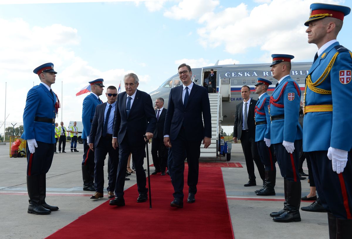 President of the Czech Republic Miloš Zeman arrived for a two-day visit to Belgrade where he was welcomed at the "Nikola Tesla" Airport by his host, President of the Republic of Serbia Aleksandar Vučić.
