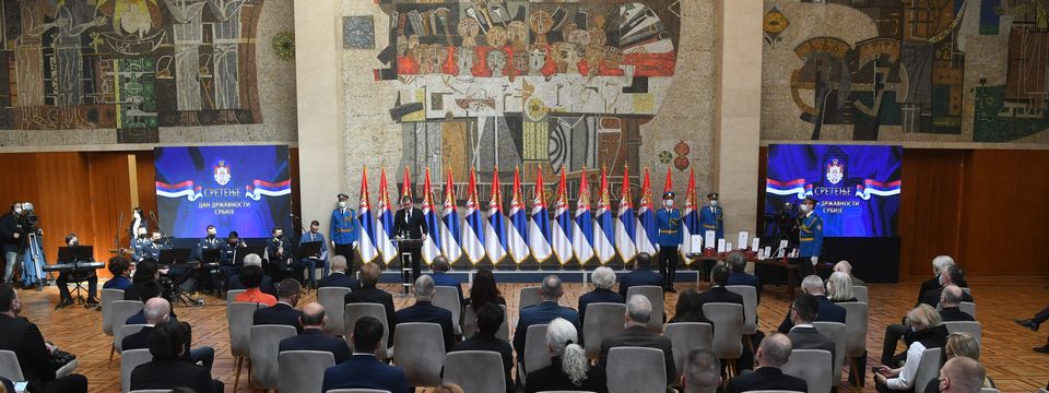 On the occasion of the Statehood Day of the Republic of Serbia, President of the Republic of Serbia Aleksandar Vučić presented decorations to deserving individuals and institutions and said that Sretenje (Presentation of Lord ) is a great day for Serbia, the day when the modern Serbian state was born.