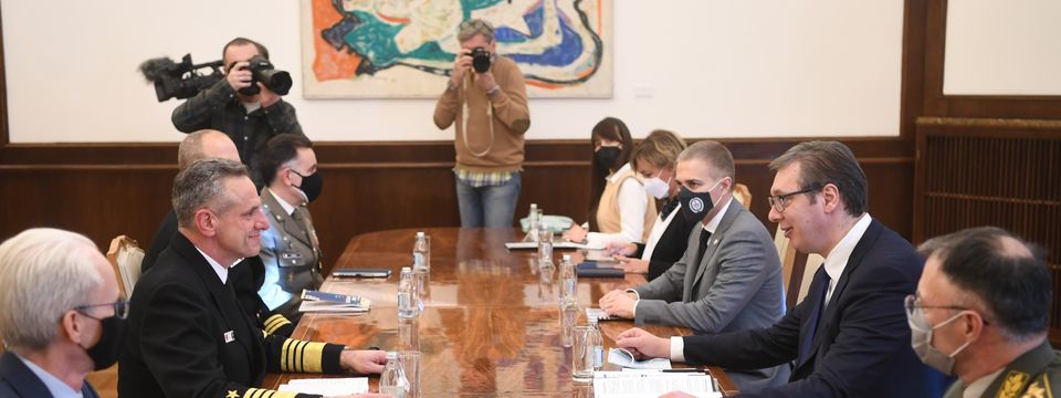 President of the Republic of Serbia Aleksandar Vučić met today with Admiral Robert Burke, Commander of the Allied Joint Force Command in Naples, to discuss forms of cooperation with NATO within the policy of military neutrality of Serbia.