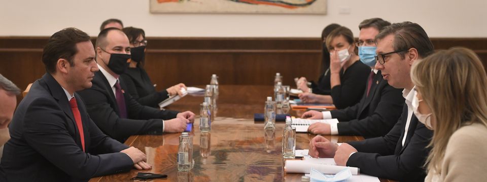 President of the Republic of Serbia Aleksandar Vučić met today with the Minister of Foreign Affairs of the Republic of Northern Macedonia, Bujar Osmani, to discuss strengthening good neighbourly relations between the two countries, through, among other things, resolving all issues through dialogue, improving economic cooperation and mutual support.