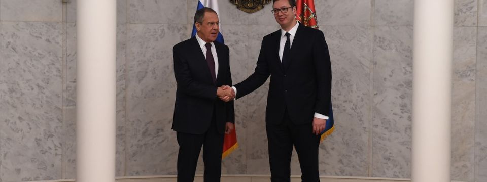 Председник Србије Александар Вучић састао се 21.02. 2018. године у вили „Мир" у Београду са министром иностраних послова Руске Федерације Сергејем Лавровом.